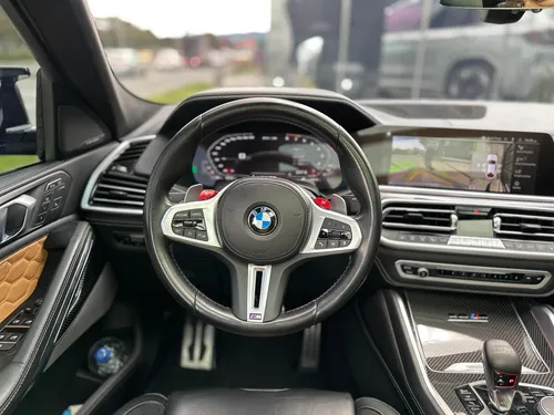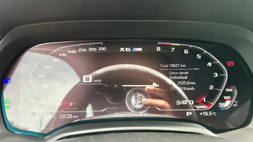 Este BMW X6 M Competition 2023 es una máquina de precisión alemana con apenas 18.627 kilómetros, prácticamente nuevo. El motor V8 TwinPower Turbo de 4.395 cc entrega 625 caballos de fuerza con una transmisión M Steptronic de 8 velocidades que hace los cambios en milisegundos, perfecta para quien busca desempeño sin compromisos. La tracción integral xDrive con lógica M garantiza control total en cualquier condición, mientras que la suspensión neumática adaptativa se ajusta automáticamente entre los modos Road, Sport y Track desde el volante.