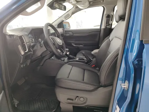El interior refleja el diseño renovado de Ford: pantalla táctil LED de 12 pulgadas con alta definición y un panel de instrumentos LED de 12.4 pulgadas que te mantiene informado en tiempo real. La dirección electroasistida y la transmisión automática hacen que manejar sea cómodo incluso en jornadas largas. El azul exterior le da un acabado moderno y llamativo, mientras que el interior combina tecnología con funcionalidad.