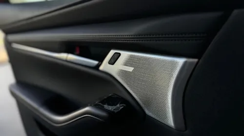 Adentro encontrarás detalles que justifican su posición premium: cuero genuino en los asientos, pantalla táctil de 10.25 pulgadas integrada con tu celular, sistema Bose con 12 parlantes que suena excepcional, aire acondicionado automático bi-zona y controles que hacen la conducción más segura con freno inteligente y asistente de carril. Los rines de aluminio de 18 pulgadas y el diseño exterior Kodo le dan ese carácter deportivo que no pasa desapercibido.