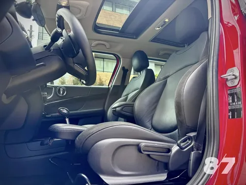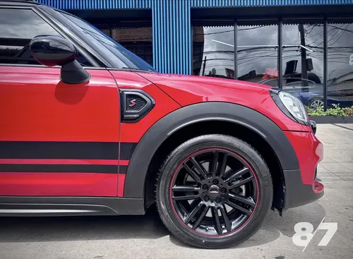 Lo que distingue este ejemplar es su equipamiento integral: asientos en cuero, techo panorámico eléctrico, iluminación LED y el sistema Harman Kardon con planta Audison que eleva significativamente la experiencia acústica. Las mejoras adicionales como el intake de alto flujo ECS Tuning, las luces Union Jack traseras y el tratamiento cerámico Ceramic Pro demuestran inversión en calidad y detalles. El color rojo Chilli con detalles negros le da presencia sin perder elegancia.